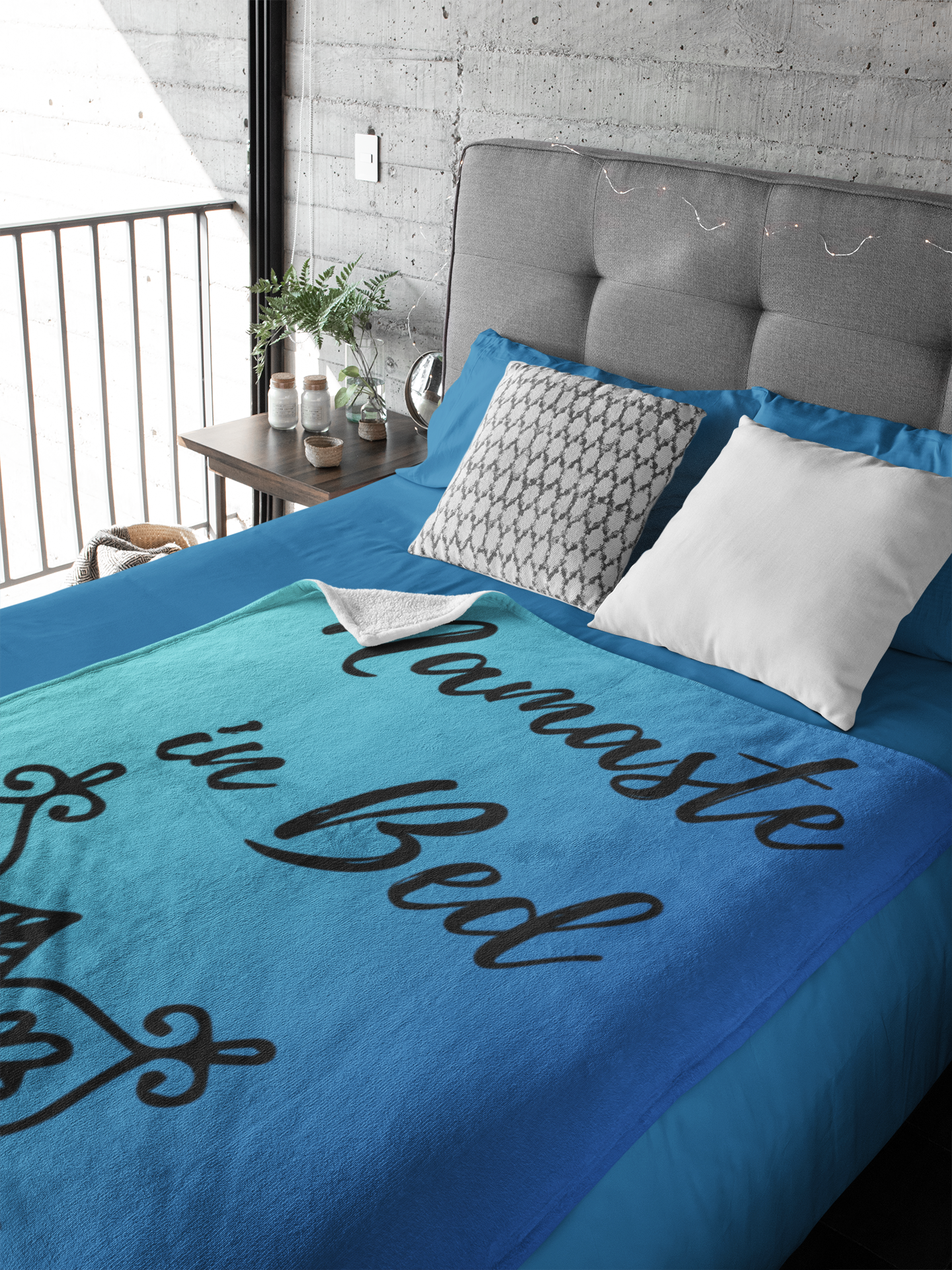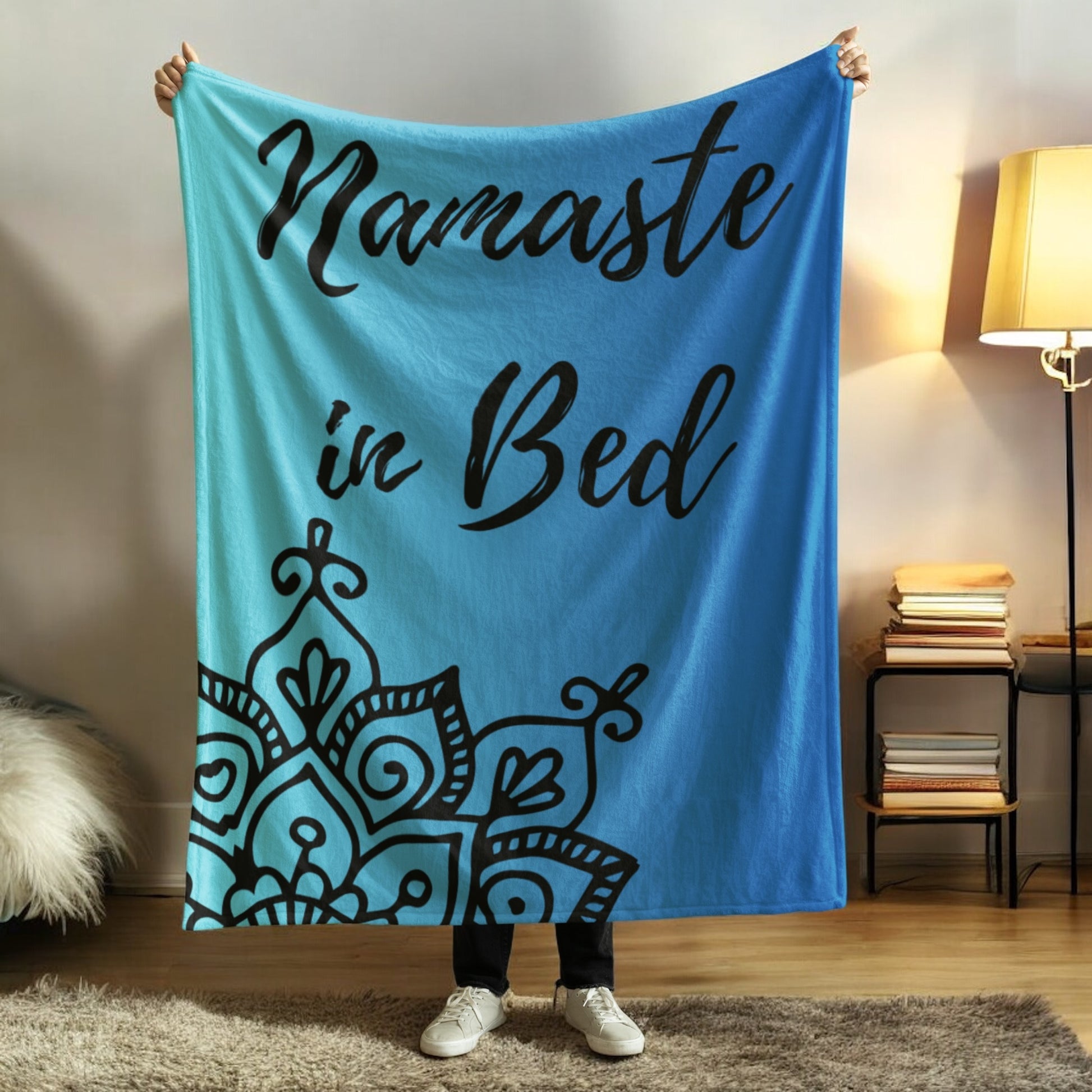 Title: Embrace Serenity with our Namaste in Bed Plush Velveteen Throw Blanket - 50x60