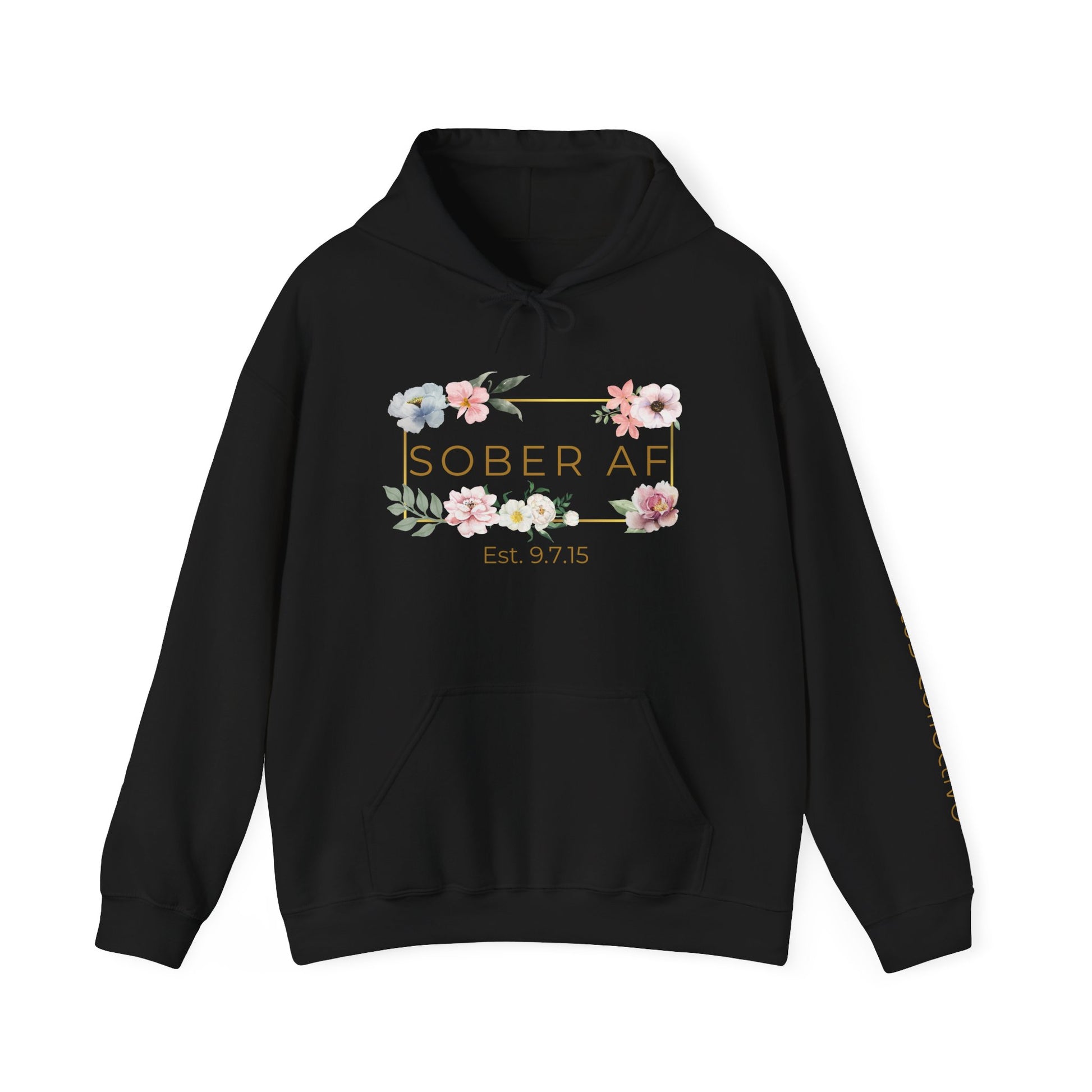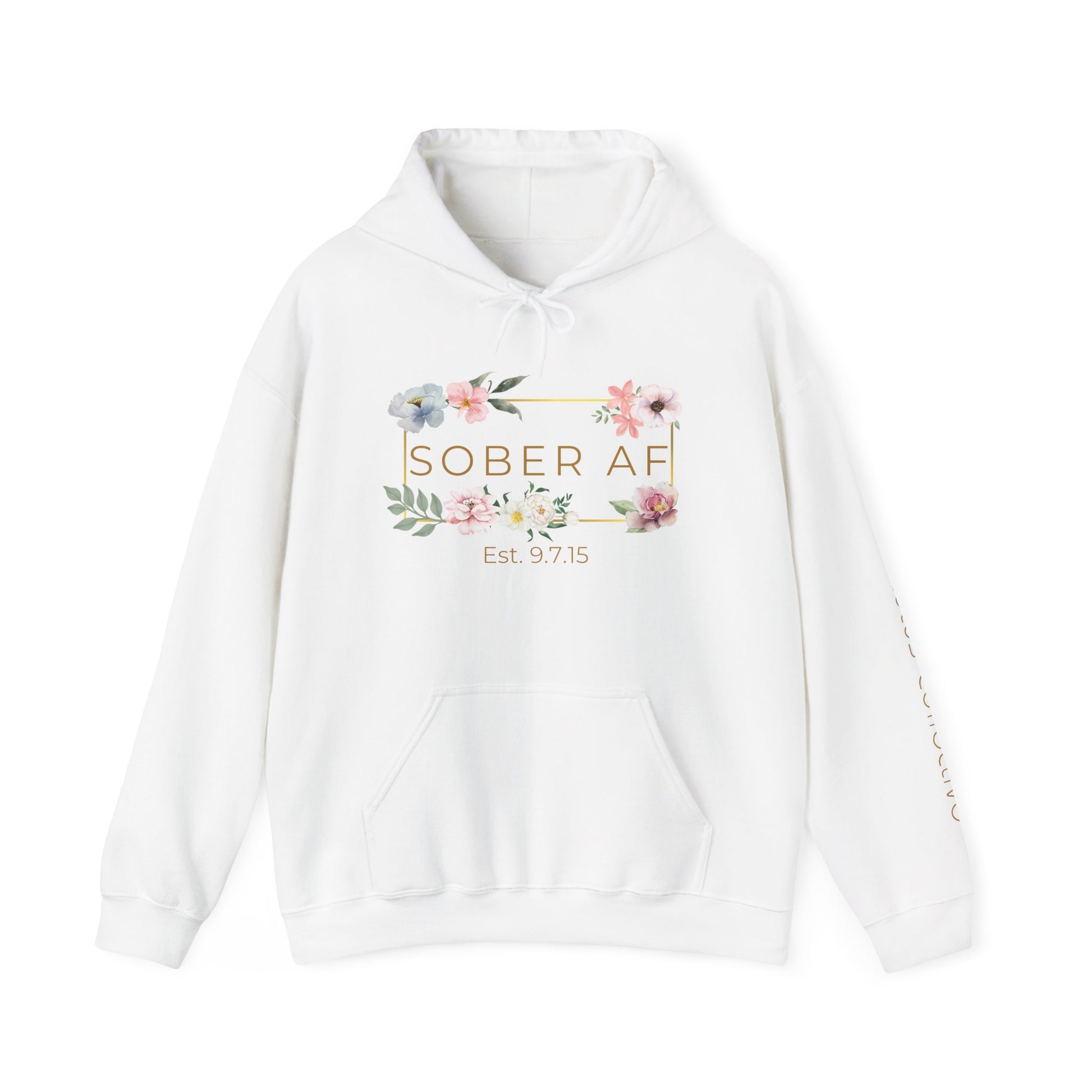 Stay cozy and empowered with our “Sober AF” Hoodie from the Rebel Lotus Collective Clean & Sober Collection. Perfect for those who own their sobriety with confidence and pride, this hoodie is a daily reminder of your strength and resilience. Featuring a beautifully minimalist floral design with a modern gold frame, it blends softness with bold self-expression. It is more than just apparel—it’s a statement of how proud you are of your sobriety. Made from high-quality fabric for all-day comfort, it comes in classic black or white to match any vibe. Wear it loud, wear it proud—because sobriety looks good on you.